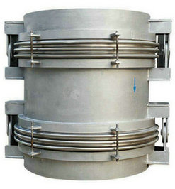 復式鉸鏈型膨脹節實(shí)際是用兩個(gè)角向型膨脹節,用長(cháng)的中間接管組合而成的。它可以吸收單平面方向上的橫向曲位移。它們的鉸鏈可以承受內壓的推力。